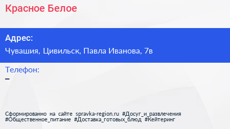 Красное & Белое по адресу Чувашия, Цивильск, Павла Иванова, 7в в дальнейшем Организация, размещена в следующих категориях: