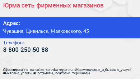 Юрма, сеть фирменных магазинов по адресу Чувашия, Цивильск, Маяковского, 45 в дальнейшем Организация, размещена в следующих категориях: