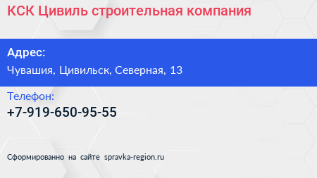 КСК Цивиль, строительная компания по адресу Чувашия, Цивильск, Северная, 13 в дальнейшем Организация, размещена в следующих категориях: