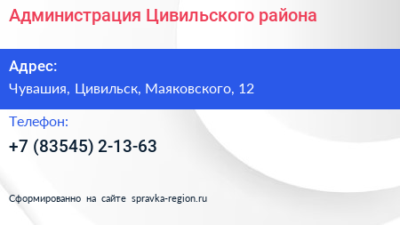 Администрация Цивильского района по адресу Чувашия, Цивильск, Маяковского, 12 в дальнейшем Организация, размещена в следующих категориях: