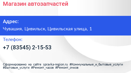 Магазин автозапчастей по адресу Чувашия, Цивильск, Цивильская улица, 1 в дальнейшем Организация, размещена в следующих категориях: