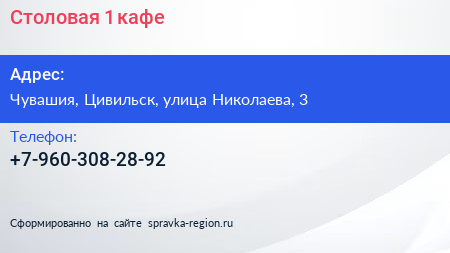 Столовая №1, кафе по адресу Чувашия, Цивильск, улица Николаева, 3 в дальнейшем Организация, размещена в следующих категориях: