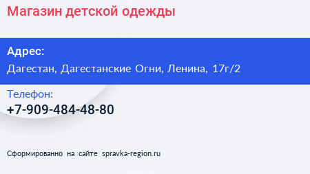 Магазин детской одежды по адресу Дагестан, Дагестанские Огни, Ленина, 17г/2 в дальнейшем Организация, размещена в следующих категориях: