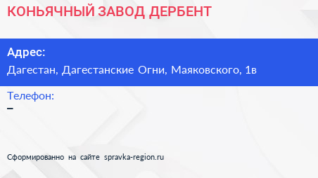 КОНЬЯЧНЫЙ ЗАВОД ДЕРБЕНТ по адресу Дагестан, Дагестанские Огни, Маяковского, 1в в дальнейшем Организация, размещена в следующих категориях: