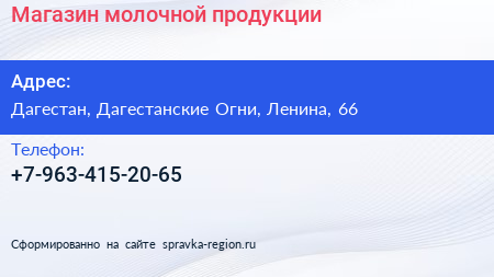 Магазин молочной продукции по адресу Дагестан, Дагестанские Огни, Ленина, 66 в дальнейшем Организация, размещена в следующих категориях:
