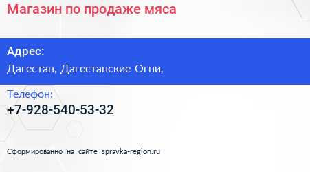Магазин по продаже мяса по адресу Дагестан, Дагестанские Огни, в дальнейшем Организация, размещена в следующих категориях:
