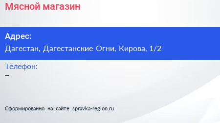 Мясной магазин по адресу Дагестан, Дагестанские Огни, Кирова, 1/2 в дальнейшем Организация, размещена в следующих категориях: