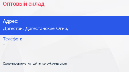 Оптовый склад по адресу Дагестан, Дагестанские Огни, в дальнейшем Организация, размещена в следующих категориях: