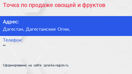Точка по продаже овощей и фруктов по адресу Дагестан, Дагестанские Огни, в дальнейшем Организация, размещена в следующих категориях: