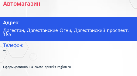 Автомагазин по адресу Дагестан, Дагестанские Огни, Дагестанский проспект, 185 в дальнейшем Организация, размещена в следующих категориях: