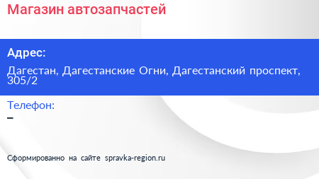 Магазин автозапчастей по адресу Дагестан, Дагестанские Огни, Дагестанский проспект, 305/2 в дальнейшем Организация, размещена в следующих категориях: