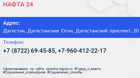 НАФТА 24 по адресу Дагестан, Дагестанские Огни, Дагестанский проспект, 20 в дальнейшем Организация, размещена в следующих категориях: