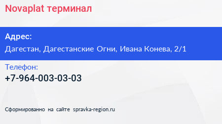 Novaplat, терминал по адресу Дагестан, Дагестанские Огни, Ивана Конева, 2/1 в дальнейшем Организация, размещена в следующих категориях: