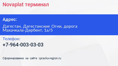 Novaplat, терминал по адресу Дагестан, Дагестанские Огни, дорога Махачкала-Дербент, 1а/5 в дальнейшем Организация, размещена в следующих категориях: