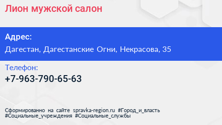 Лион, мужской салон по адресу Дагестан, Дагестанские Огни, Некрасова, 35 в дальнейшем Организация, размещена в следующих категориях: