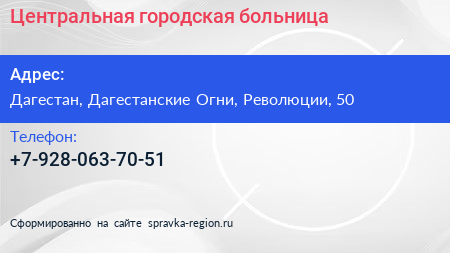 Центральная городская больница по адресу Дагестан, Дагестанские Огни, Революции, 50 в дальнейшем Организация, размещена в следующих категориях:
