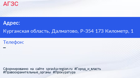 АГЗС по адресу Курганская область, Далматово, Р-354 173 Километр, 1 в дальнейшем Организация, размещена в следующих категориях: