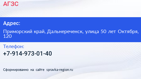 АГЗС по адресу Приморский край, Дальнереченск, улица 50 лет Октября, 120 в дальнейшем Организация, размещена в следующих категориях: