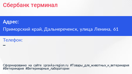 Сбербанк, терминал по адресу Приморский край, Дальнереченск, улица Ленина, 61 в дальнейшем Организация, размещена в следующих категориях: