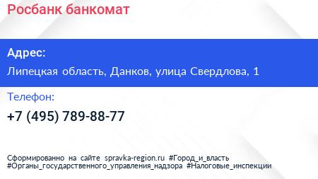 Росбанк, банкомат по адресу Липецкая область, Данков, улица Свердлова, 1 в дальнейшем Организация, размещена в следующих категориях: