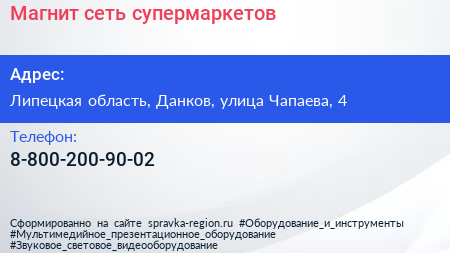 Магнит, сеть супермаркетов по адресу Липецкая область, Данков, улица Чапаева, 4 в дальнейшем Организация, размещена в следующих категориях: