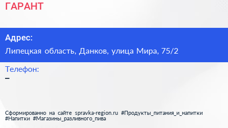 ГАРАНТ по адресу Липецкая область, Данков, улица Мира, 75/2 в дальнейшем Организация, размещена в следующих категориях: