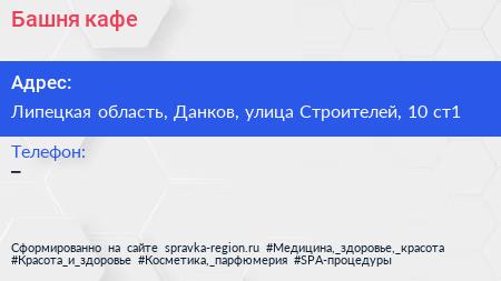 Башня, кафе по адресу Липецкая область, Данков, улица Строителей, 10 ст1 в дальнейшем Организация, размещена в следующих категориях: