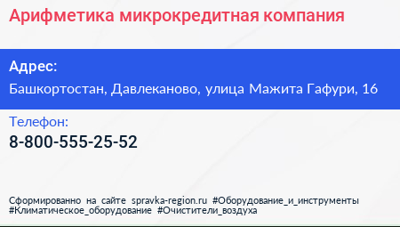 Арифметика, микрокредитная компания по адресу Башкортостан, Давлеканово, улица Мажита Гафури, 16 в дальнейшем Организация, размещена в следующих категориях: