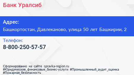 Банк Уралсиб по адресу Башкортостан, Давлеканово, улица 50 лет Башкирии, 2 в дальнейшем Организация, размещена в следующих категориях: