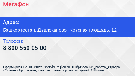 МегаФон по адресу Башкортостан, Давлеканово, Красная площадь, 12 в дальнейшем Организация, размещена в следующих категориях: