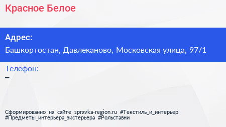 Красное & Белое по адресу Башкортостан, Давлеканово, Московская улица, 97/1 в дальнейшем Организация, размещена в следующих категориях: