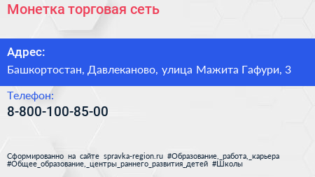 Монетка, торговая сеть по адресу Башкортостан, Давлеканово, улица Мажита Гафури, 3 в дальнейшем Организация, размещена в следующих категориях: