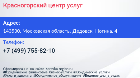Красногорский центр услуг по адресу 143530, Московская область, Дедовск, Ногина, 4 в дальнейшем Организация, размещена в следующих категориях:
