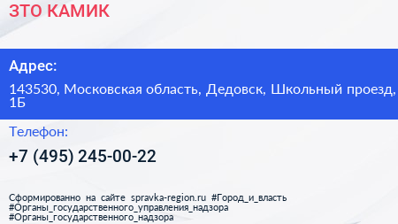 ЗТО КАМИК по адресу 143530, Московская область, Дедовск, Школьный проезд, 1Б в дальнейшем Организация, размещена в следующих категориях: