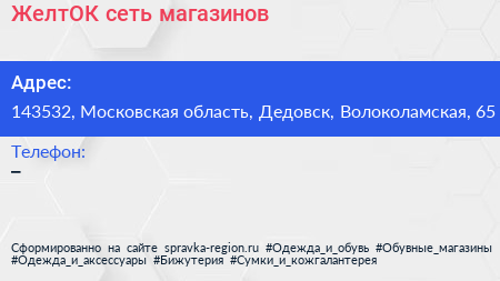 ЖелтОК, сеть магазинов по адресу 143532, Московская область, Дедовск, Волоколамская, 65 в дальнейшем Организация, размещена в следующих категориях: