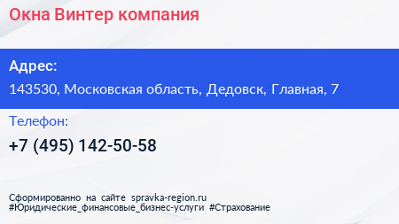 Окна Винтер, компания по адресу 143530, Московская область, Дедовск, Главная, 7 в дальнейшем Организация, размещена в следующих категориях: