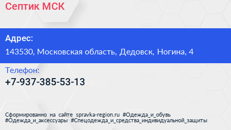 Септик МСК по адресу 143530, Московская область, Дедовск, Ногина, 4 в дальнейшем Организация, размещена в следующих категориях:
