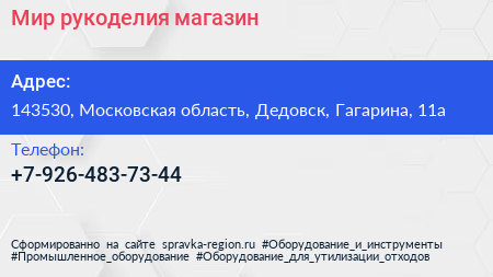 Мир рукоделия, магазин по адресу 143530, Московская область, Дедовск, Гагарина, 11а в дальнейшем Организация, размещена в следующих категориях: