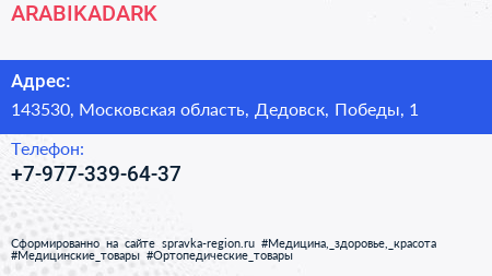 ARABIKADARK по адресу 143530, Московская область, Дедовск, Победы, 1 в дальнейшем Организация, размещена в следующих категориях: