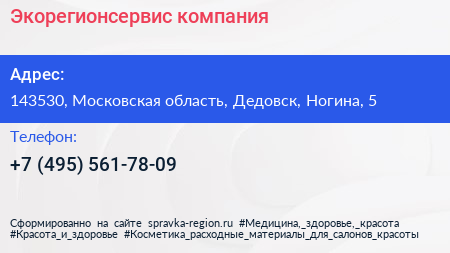 Экорегионсервис, компания по адресу 143530, Московская область, Дедовск, Ногина, 5 в дальнейшем Организация, размещена в следующих категориях: