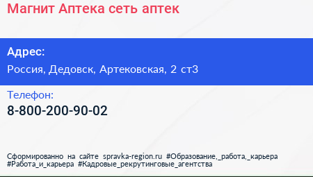 Магнит Аптека, сеть аптек по адресу 2 с3, Артековская улица, Жилой комплекс "Артек", Нефедьево, Козино, городской округ Красногорск, Московская область, Центральный федеральный округ, 143430, Россия в дальнейшем Организация, размещена в следующих категориях: