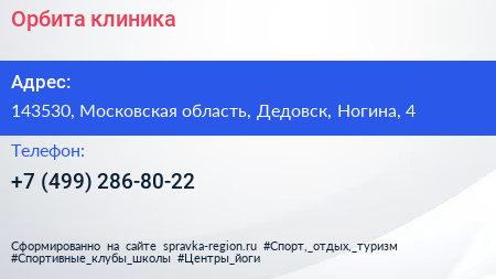 Орбита, клиника по адресу 143530, Московская область, Дедовск, Ногина, 4 в дальнейшем Организация, размещена в следующих категориях: