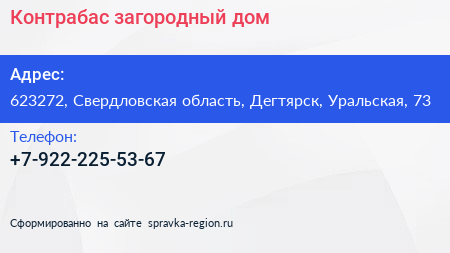 Контрабас, загородный дом по адресу 623272, Свердловская область, Дегтярск, Уральская, 73 в дальнейшем Организация, размещена в следующих категориях: