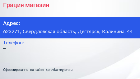 Грация, магазин по адресу 623271, Свердловская область, Дегтярск, Калинина, 44 в дальнейшем Организация, размещена в следующих категориях: