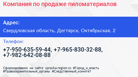 Компания по продаже пиломатериалов по адресу Свердловская область, Дегтярск, Октябрьская, 2 в дальнейшем Организация, размещена в следующих категориях: