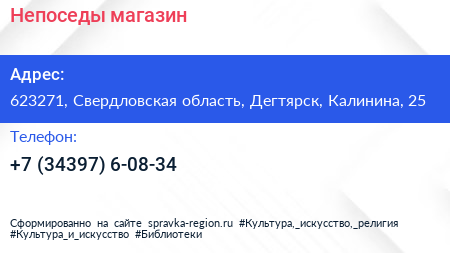 Непоседы, магазин по адресу 623271, Свердловская область, Дегтярск, Калинина, 25 в дальнейшем Организация, размещена в следующих категориях: