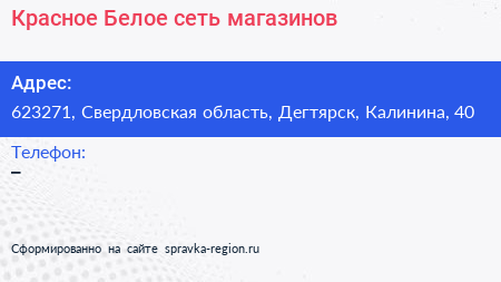 Красное & Белое, сеть магазинов по адресу 623271, Свердловская область, Дегтярск, Калинина, 40 в дальнейшем Организация, размещена в следующих категориях: