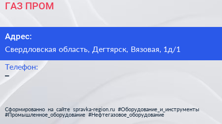 ГАЗ-ПРОМ по адресу Свердловская область, Дегтярск, Вязовая, 1д/1 в дальнейшем Организация, размещена в следующих категориях: