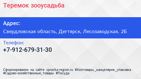 Теремок, зооусадьба по адресу Свердловская область, Дегтярск, Лесозаводская, 2Б в дальнейшем Организация, размещена в следующих категориях: