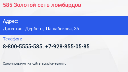 585*Золотой, сеть ломбардов по адресу Дагестан, Дербент, Пашабекова, 35 в дальнейшем Организация, размещена в следующих категориях: